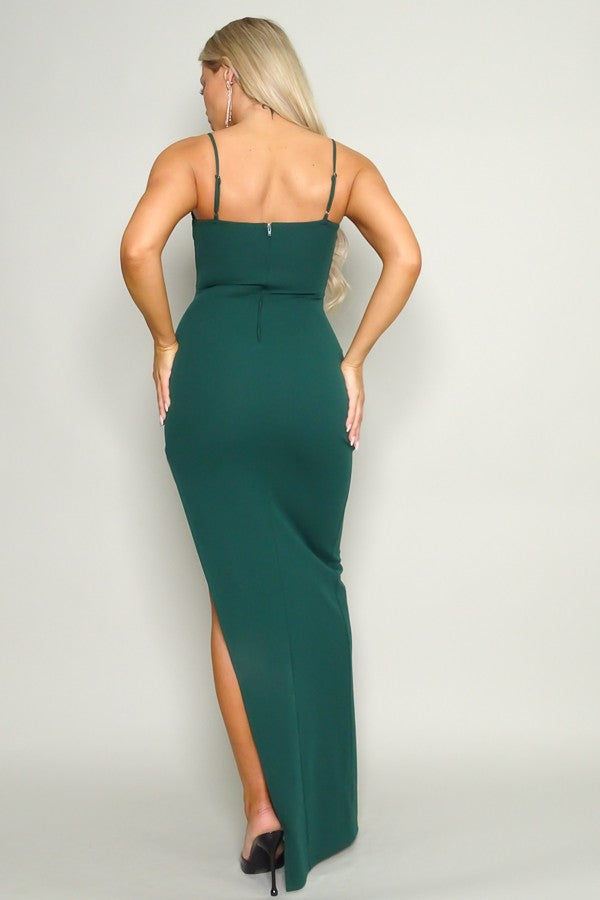 Spaghetti strap bow front maxi dress Adjustable spaghetti straps Sweetheart neckline Open front Front bow ties detail