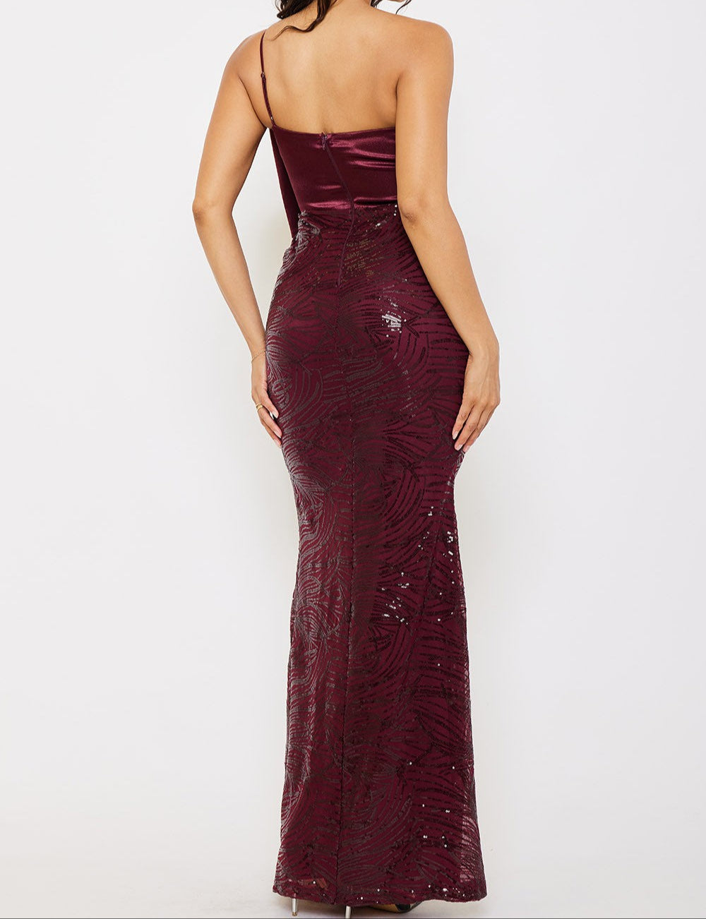 Satin With Patterned Sequin Body Maxi Dress